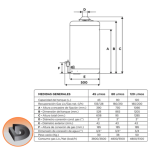 TERMOTANQUE ESCORIAL 120 Lts. MULTIGAS