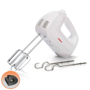 - Modelo: AB103 · Batidores metálicos. · Ganchos amasadores metálicos. · 5 velocidades. · Función turbo. · Botón eyector. · Potencia: 450 watts. Garantía 2 Años. Industria Argentina.